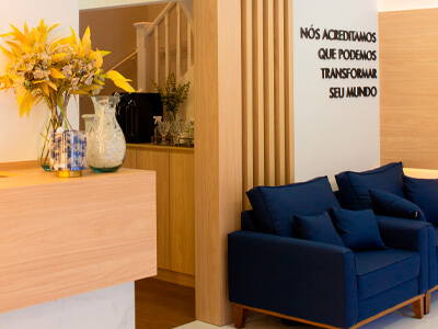 Recepção e salas de atendimento clínico planejadas para o seu bem estar.